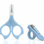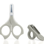 - Set de tijeras y cortaúñas. Este práctico set para la manicura infantil incluye tijeras con la punta redondeada, para un manejo más seguro, (y capucha de protección para poder llevar en el bolso) y cortaúñas. Recomendado para +0 meses. Color rosa, azul o gris.