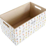 - Presentada en caja de madera. La caja de madera está pintada con motivos infantiles tanto en su parte frontal como trasera. Tiene asas laterales para poder transportarla fácilmente.