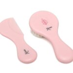 - Set de cepillo y peine. El cepillo es extrasuave para la piel y el cabello delicados de los bebés, y su mango resulta cómodo de sujetar para facilitar su uso. Además, está hecho con cerdas naturales hechas a base de lana. Tamaño 14cm. Color rosa, verde o gris.