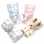 - Delicada manta de tacto muy suave y materiales de gran calidad. Aporta calor y comodidad. Adornada con una cinta con la cabecita de un animalito. Tamaño 80x110cm. Color rosa, azul, beige o gris.