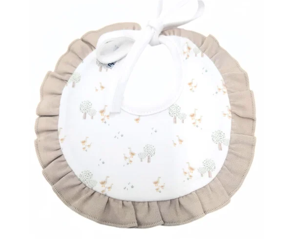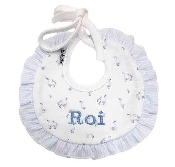 - Babero de Algodón peinado 100%. Alta calidad. Destaca por su suavidad y resistencia. Fabricado en España. Color rosa, azul o arena.