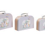 • Presentada en Maleta decorada en tapa con perritos y gatitos, la base de la maleta, en tono gris. Tamaño 28x20x9,5cm.