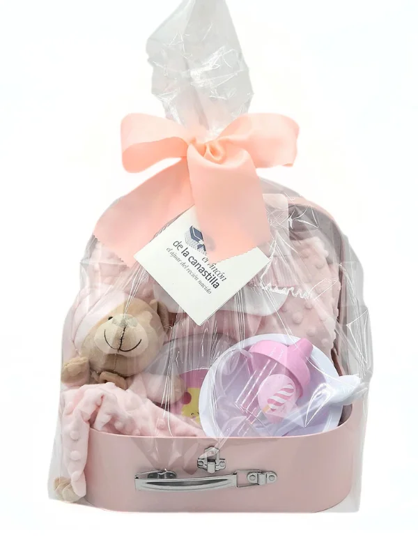 - Maleta infantil decorativa en su habitación o para guardar pequeños recuerdos o para jugar y guardar sus cosistas. Color rosa, azul o gris. Tamaño 31x20x9cm.